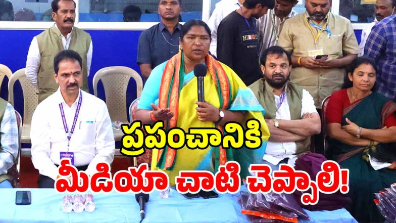 Seethakka: సమక్క సారలమ్మ జాతర ఔన్నత్యాన్ని ప్రపంచానికి చాటి చెప్పాలని రాష్ట్ర గ్రామీణ అభివృద్ధి పంచాయతీరాజ్ శాఖ మంత్రి వర్యులు దనసరి అనసూయ (సీతక్క) (Seethakka) అన్నారు. మేడారం సమ్మక్క సారలమ్మ జాతర వద్ద ఏర్పాటు చేసిన మీడియా సెంటర్ లో జాతరను ప్రెస్ కవరేజ్ చేస్తున్న వివిధ మీడియా సంస్థలకు చెందిన జర్నలిస్టు లకు, మీడియా ప్రతినిధులకు మంత్రి సీతక్క టీ షర్ట్ లను పంపిణీ చేశారు. మంత్రి సీతక్క మాట్లాడుతూ కోట్లాది మంది భక్తుల కొంగు బంగారంమైన సమక్క సారలమ్మ జాతర కు భక్తుల రాక విపరీతంగా పెరిగిపోయిందని అన్నారు.
